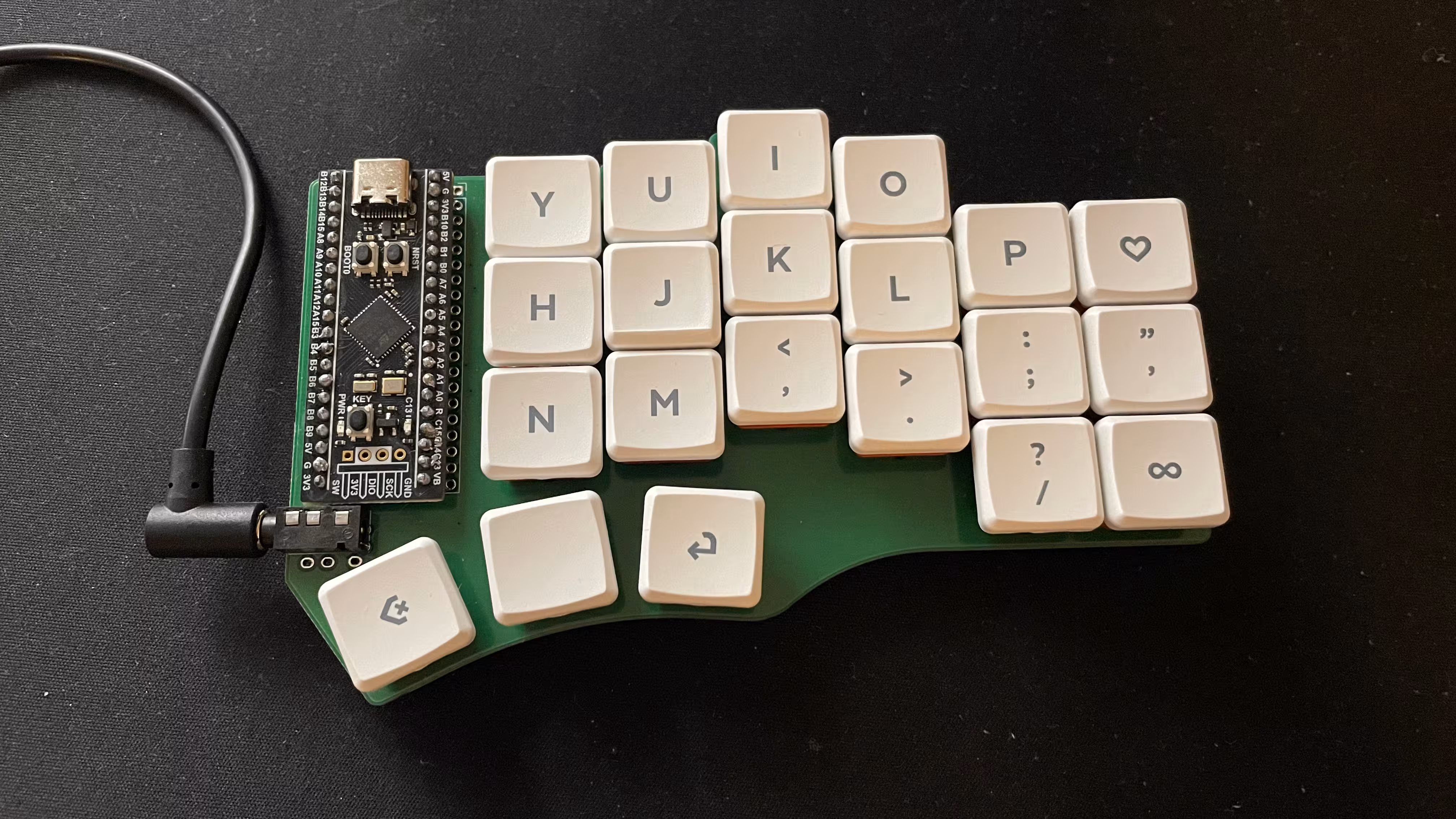 Unfortunately, I haven't found a keymap I'm happy with yet. I went in trying to figure one out on my own, but after much consternation I've decided to try something mostly inspired by the Miryoku layout. It's my first time trying out home row mods and I think they'll be a big help. It's feeling nice so far, but still slow.